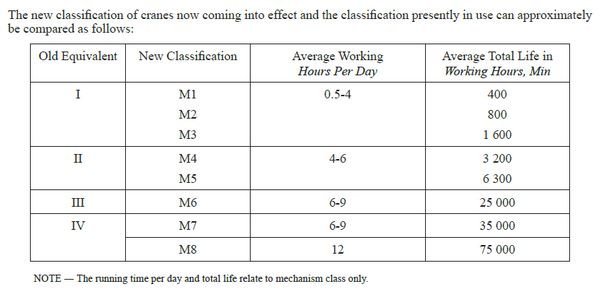 class of EOT Cranes defines the usage of cranes, as seen above table different classes has different total life in working hours — so more the class the more is the life of the crane