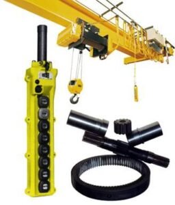 Mechanical spare parts for EOT Cranes and hoists includes gears, gear shaft, gear axles, pinions, safety latches, hook block assembly, crane hooks, pulleys for hook blocks, L block assembly, crane wheels, rope drums, rope guides, roller bearings, crane duty wire ropes, mono rail trolleys, rail clamps, spring buffers, rubber buffers, slings in wire rope, polyester, nylon slings and also other customized parts.